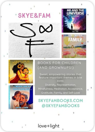 SKYE+FAM IS THE AUTHOR OF 5 BOOKS WHOSE STORIES CELEBRATE FAMILY AND EMPOWER CHILDREN (AND ADULTS!) TO FEEL CENTERED, SUPPORTED, AND LOVED IN THE WORLD.